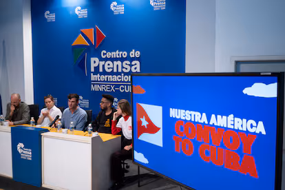 Un siège que cette même flottille affirme avoir subi, sous forme de refus d'aide, de menaces contre ses membres et de longs interrogatoires dans les aéroports américains. « Nous comprenons que nos collègues assument un niveau de risque comme celui de la flottille vers Gaza, mais nos enfants et petits-enfants vont se souvenir d'un moment comme celui-ci », ajoute Adler, l'un des organisateurs. À la fin de la semaine, 500 membres de la flottille, venus de 30 pays, passeront par La Havane, livrant des panneaux solaires mexicains (d'une valeur d'un demi-million de dollars), des semences et 20 tonnes d'aide humanitaire, médicale et alimentaire, en grande partie collectées dans le cadre de collectes communautaires sur les places de dizaines de capitales.